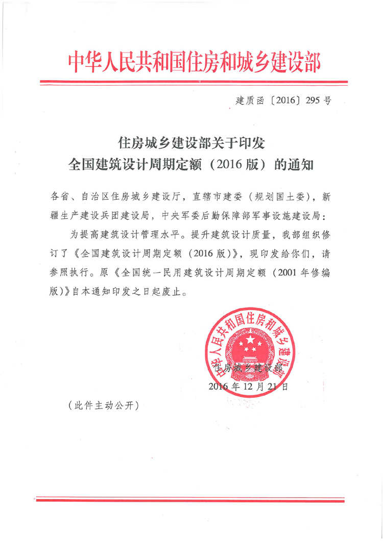 住房城鄉(xiāng)建設(shè)部關(guān)于印發(fā)全國建筑設(shè)計(jì)周期定額(2016版)的通知