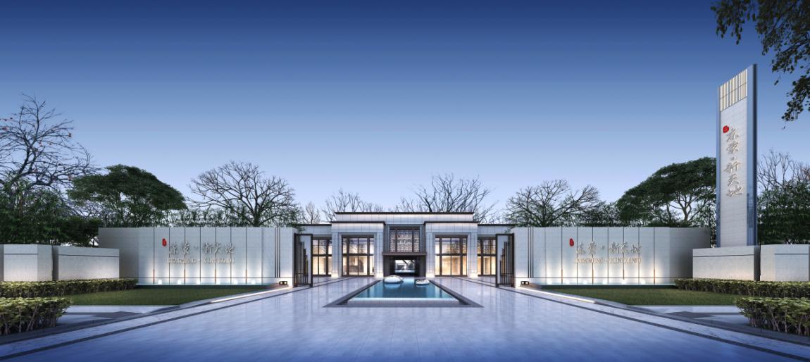 開敞式大門設(shè)計(jì),借鑒盛唐時(shí)期的皇家建筑,化繁為簡,植入人文典故,營造“東蒙之府,文人之園”業(yè)主如赴文化雅集,觀文人情趣,棲府苑之所。