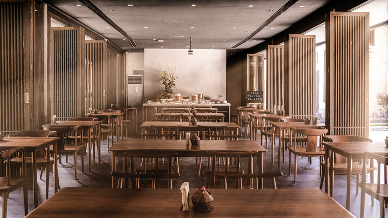 酒店內(nèi)溫馨舒適的開放空間與每棟土樓的內(nèi)部庭院相連接。這些庭院包含了餐廳、展覽空間、手工藝作坊、烹飪工作室、瑜伽工作室和兒童游樂場等一系列公共空間??腿藗兛梢栽诜块g內(nèi)用漳州特有的瓷器品嘗當(dāng)?shù)氐母涕俨?,或者在周圍的山間游玩探索,挖掘新鮮美味的竹筍。青普土樓文化行館的設(shè)計旨在打造一個既尊重傳統(tǒng)又啟發(fā)靈感的住宿環(huán)境。酒店提供種類豐富的餐飲,以及當(dāng)?shù)靥刂频钠【啤2蛷d采用新鮮的時令蔬菜和有機食材,由本土廚師帶來地道的客家美食。文化行館的持有者王功權(quán)長期致力于在酒店、金融等產(chǎn)業(yè)中推動中國傳統(tǒng)文化的發(fā)展,并將酒店服務(wù)業(yè)的水平推向一個新的高度。