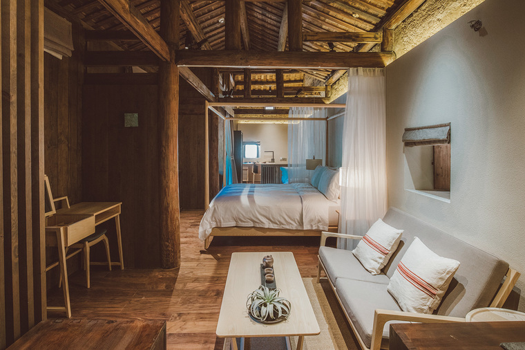 青普土樓文化行館位于福建漳州的文化遺產(chǎn)地,由5棟傳統(tǒng)的土樓建筑組成,擁有十分悠久的歷史,其中3棟是在晚清時期建成。設(shè)計團隊將土樓古老的、以夯土墻和木結(jié)構(gòu)為主的風(fēng)格保留下來,維持了建筑的原始樣貌,同時在空間中置入了富有當(dāng)?shù)靥厣乃囆g(shù)裝飾,強調(diào)出青普特有的文化內(nèi)涵。行館共包含22間雙臥室套房,在內(nèi)部,綠色的板巖與溫暖的實木和冷杉木形成搭配,古典樣式的柱梁與現(xiàn)代空間結(jié)合在一起,凸顯出傳統(tǒng)工藝的美感。由梵幾(FNJI)設(shè)計的室內(nèi)家具將這種傳統(tǒng)工藝與現(xiàn)代的設(shè)計語言結(jié)合起來,更好地適應(yīng)了當(dāng)代中國人的生活方式。